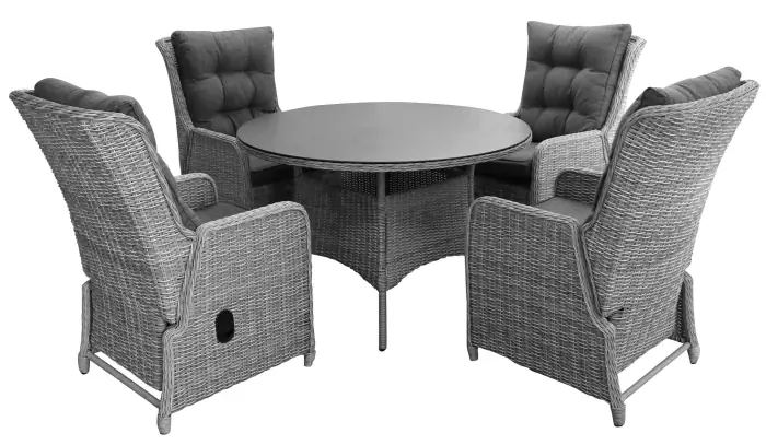 Ovales Gartenset | 4 verstellbare Dublin Gartenstühle (Mystic Grau) | Limasol Polywood Gartentisch 180 cm (Wood)